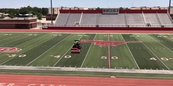 Premium top grade is a process that smooths and levels the surface of an athletic field. Lower areas and undulations are removed by spreading and grading sand over the turf. This maintenance process provides adequate top dressing of roughly a ½” on the level parts of the field. Areas that are low or undulating will be filled in with sand, which will drop in and level the area. A premium top grade will create a smoother, safer playing surface.